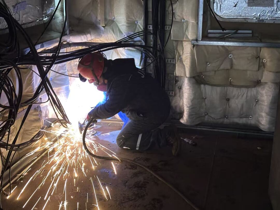 造船工人在进行打磨、焊接作业 据介绍,江新造船有限公司2026年产值目标是14亿元,较2025年几乎翻番,将交付14种型号、18艘船,目前手持订单已经排到了2027年年底。 在狭窄的电缆通道里,记者见到了正在敷设电缆的电气班组长杨忠虎。他和工友们在密如蛛网的钢结构之间,将总长度超过数百公里的各种电缆一根根铺设到位,并准确连接至每一个控制终端。 “这艘船的电缆比普通船多出近一倍,因为要传输电力和各种智能化数据。”杨忠虎一边熟练地绑扎电缆,一边说,“每一根线都不能接错,每一个接头都必须严丝合缝。船到了海上,要是因为一根线出问题导致停航,那就是大事。我们必须对得起‘全球最大’这四个字。” 巨轮藏着“大心脏” 纯电闯深蓝 眼前的“宁远电鹏”号,船长127.8米,型宽21.6米,型深10.5米,甲板约有6个篮球场大小。仅从外观,已能感受到万吨巨轮的压迫感。而它真正的核心,藏于钢铁躯壳之内。 “这艘船最大的不同,就是它有一颗巨大的‘绿色心脏’。”项目经理朱钢带领记者走进船舱,指着一排排正在安装调试的电池舱介绍道,该船采用的是大容量纯电动力系统,总装机容量近20000千瓦时,相当于上百辆电动汽车的总和。预计单船每年可减少约1462吨二氧化碳排放,实现营运零污染。 江新造船有限公司是江西省重点船舶制造基地和省国防工业重点军工企业,拥有钢质船舶、铝质船舶和舾装件多条生产线,具备2万吨级以下各类船舶生产建造能力。但万吨级船舶仅靠电池驱动,在国际造船史上仍是极具挑战性的课题,设计建造过程堪称“摸着石头过河”。