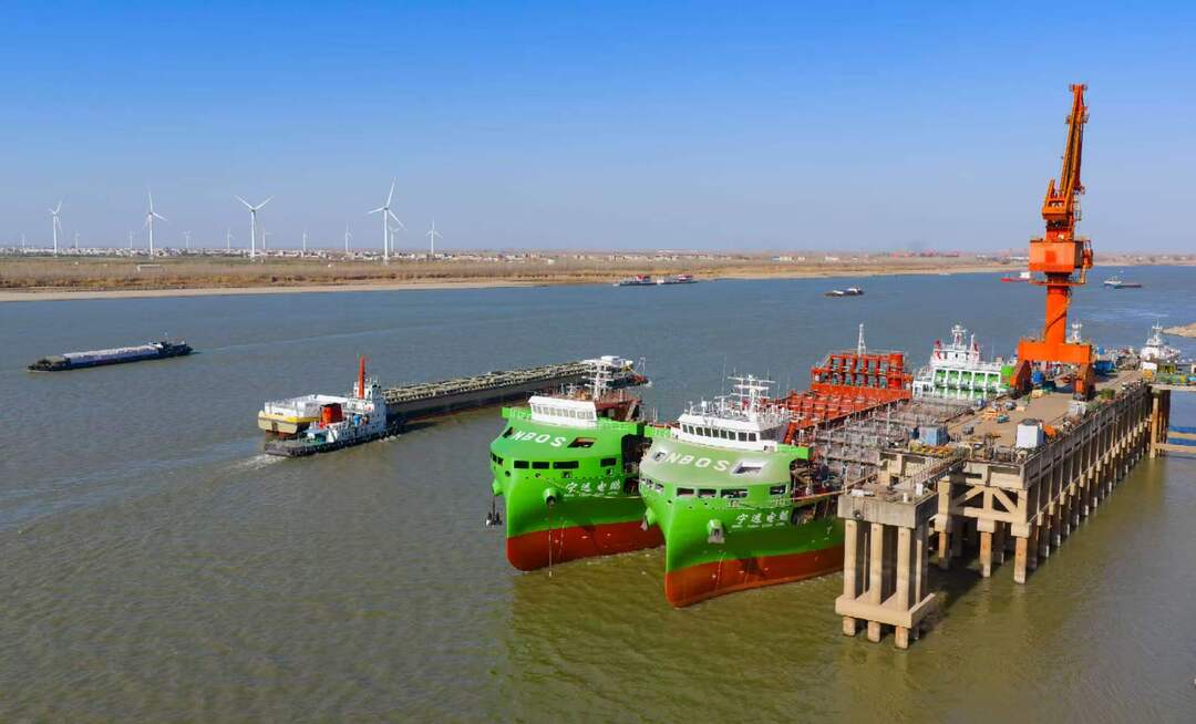 “宁远电鲲”号和“宁远电鹏”号停靠在江边 “首先是重量,10个箱式电池如何布局,才能既保证动力又不影响船体平衡?我们利用数字化建模进行了上百次仿真模拟。其次是安全,由于是海上露天存放,密性等级要求更高,电池的散热、防水、防火,每一个环节都必须做到极致。”朱钢解释道。 电池安装后严禁动火,所有工序必须在电池上船前考虑到位,不能漏掉任何一道工序。一般来说,普通船有2000多个报警点,而这艘船电池部分就有20000多个报警点,包括温度保护、电流保护、火警保护等,都要一项一项测试。 “高端智能”同样是这艘船的亮眼标签。在驾驶室,记者看到了充满科技感的一体化操作台,这里集成了“智慧大脑”,搭载全天候航行视觉感知、航线规划、智能辅助避碰等创新功能。船在海上跑,岸上的工程师不仅能实时监控“身体状况”,还能通过大数据分析给出最优航行方案,让船舶不仅“零碳”,而且“聪明”。 据介绍,这两艘船主要用于短途货运,如在舟山附近岛屿与宁波之间往返。充一次电可跑约90海里(约166.68公里),足以满足其在特定沿海航区航行的需求。 沿江小县城绿色产业链催生千亿集群 纯电海船如何解决充电难题?江新造船有限公司给出的答案是:换电。 他们发明了一种船舶电池组快速更换平台,采用浮动式结构设计。当船舶停靠港口时,无需长时间等待充电,可直接通过吊装设备将箱式电池整体更换,就像给巨轮换一块“巨型充电宝”。此外,船上还配备了光伏系统,为船舶运营提供可再生能源支持,真正实现营运及靠泊装卸货全程零排放。