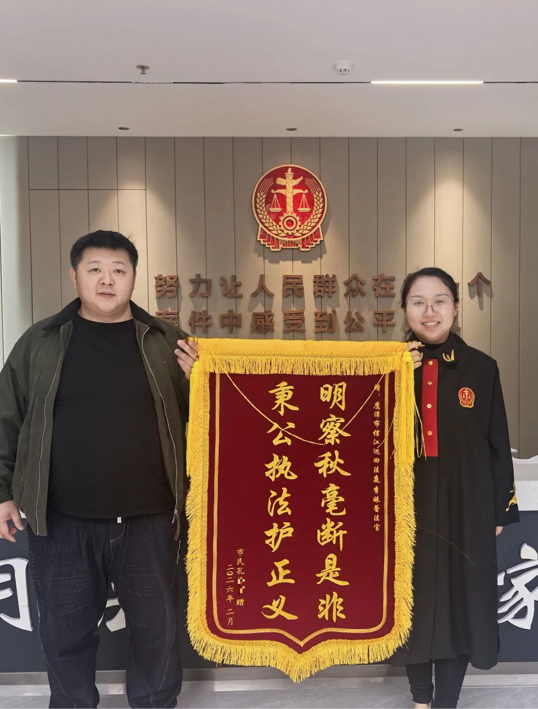 近日,月湖区法院成功审结一起房屋买卖合同纠纷案件。在承办法官李姝蕾的细致审理下,不仅依法确认了房屋买卖合同的效力,更果断撤销了银行的抵押权,帮助当事人孔某顺利拿回了属于自己的房屋产权。案件判决后,孔某特意送来一面写有“明察秋毫断是非,秉公执法护正义”的锦旗,对法官高效公正的办案表示由衷感谢。