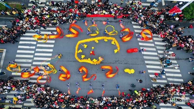 高空瞰吉安县 祥龙织就闹春图(央广网发 刘小荣 摄) 喧天锣鼓中,一群年轻的身影格外耀眼。来自吉安职业技术学院与吉安幼儿师范高等专科学校的学生们,扛起龙具,舞得有模有样。他们的胳膊或许还不够粗壮,但眼神里透着光,动作里带着劲。