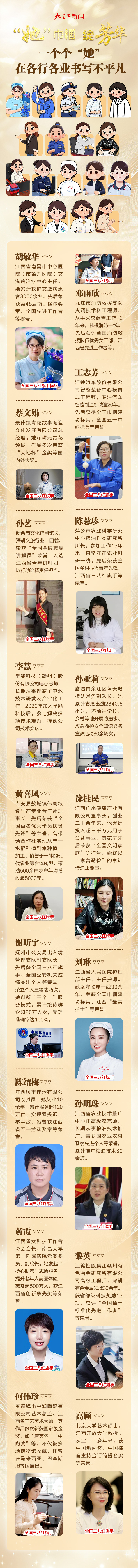 3月2日,全国妇联在北京举行纪念“三八”国际妇女节暨表彰大会,表彰全国各行各业涌现出的优秀女性代表。此次大会共授予9人全国三八红旗手标兵称号,表彰全国三八红旗手598人、全国三八红旗集体400个、全国巾帼文明岗600个。 其中,江西省南昌市中心医院(市第九医院)艾滋病治疗中心主任胡敏华荣获全国三八红旗手标兵称号,成为我省第八位获此殊荣的优秀女性。同时,江西共有17名女性被授予全国三八红旗手称号。这份荣誉,不仅镌刻着赣鄱女儿的实干与担当,也展现出新时代女性的奋斗风采。 从科研一线到田间地头,从基层岗位到广阔舞台,她们以敢为人先的锐气、开拓进取的智慧、坚韧不拔的毅力,在平凡的岗位上书写不凡华章。值此“三八”国际妇女节之际,让我们聚焦这份闪耀的“巾帼群英谱”,感受向上向善的“她”力量,致敬每一位在红土地上默默耕耘、熠熠生辉的奋斗者!