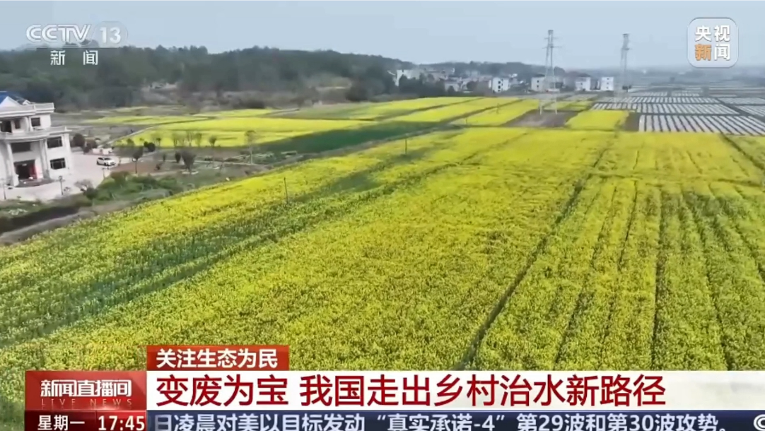 3月9日,央视《新闻直播间》栏目播出《关注生态为民 变废为宝 我国走出乡村治水新路径》,报道九江庐山在农村黑臭水体治理中的创新实践。当地通过“简易处理+就近回用”模式,将生活污水处理尾水转化为农田灌溉的“营养液”,实现变废为宝,走出了一条生态治水的新路径。