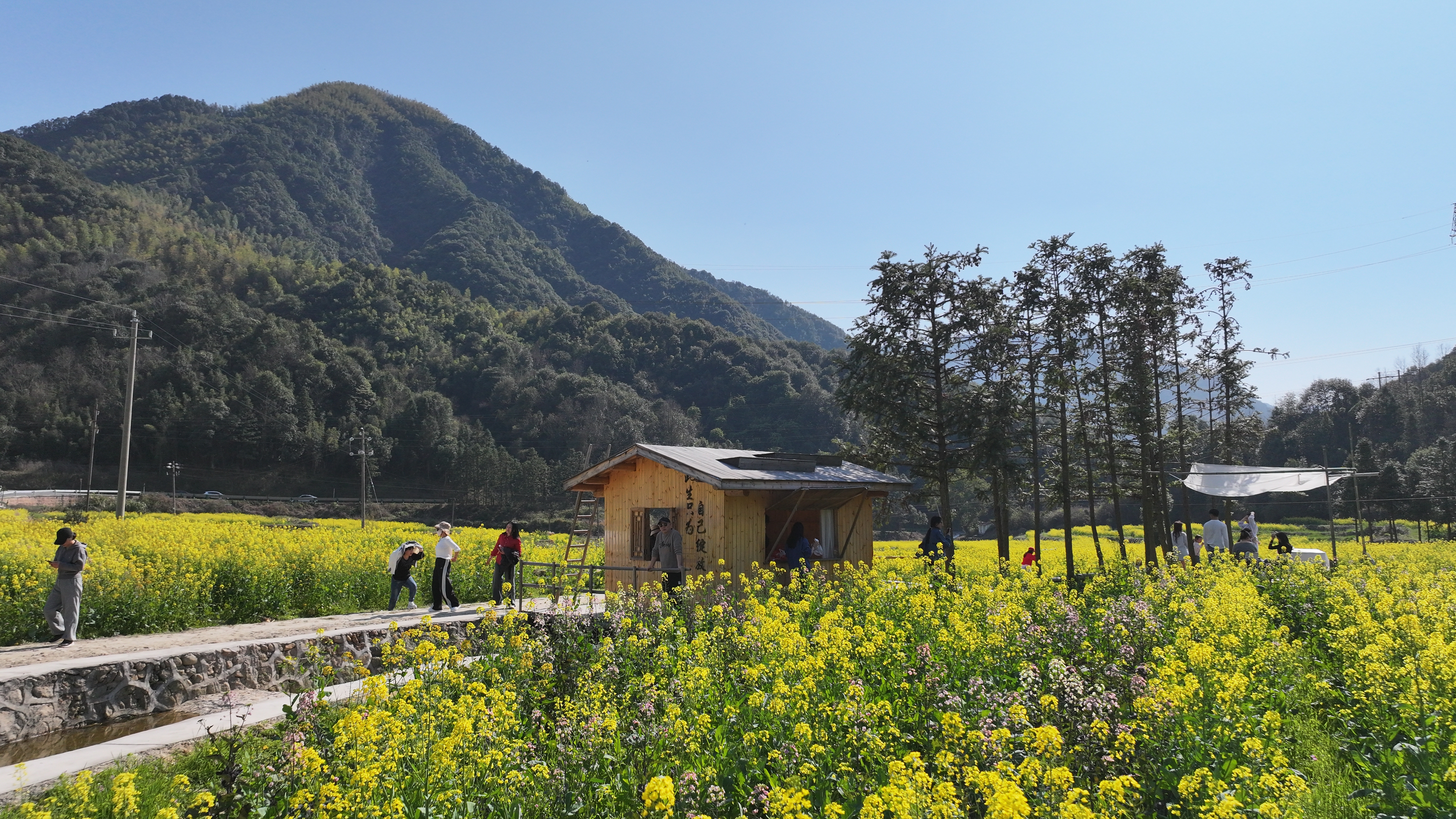 七彩油菜花海顺着梯田铺展,许愿树下红丝带随风轻摆,梯田间的秋千上,游客们举着手机定格美景……伴着春日的花香,3月21日,记者走进鹰潭市龙虎山景区上清镇泥湾村小半山度假村,千亩七彩油菜花海梯田层层叠叠,青瓦民宿与青山黛色相映成趣,这个昔日藏在深山人未识的“空心村”已然成为该市春日打卡地。 “以前哪敢想这里能这么热闹?”泥湾村党支部书记饶员生看着络绎不绝的游客,语气里满是感慨。小半山隐于深山峡谷,共有29户16栋农房,因山高路远、无产业支撑,多数村民外出务工,不少村民为了生活方便搬离了村子,是典型的“空心村”,农房闲置破败、山水资源无人问津。 转机始于2023年。客商蔡样祥游玩途中偶然发现这片藏于深山的生态宝地。“我取了山间的泉水送去检测,发现是优质弱碱性水,而且这里负氧离子含量高,是天然的‘氧吧’。如果能在这里建一座度假村,让都市人在闲暇时能远离喧嚣、亲近自然,一定大有可为。”蔡样祥说干就干,迅速启动项目筹备。