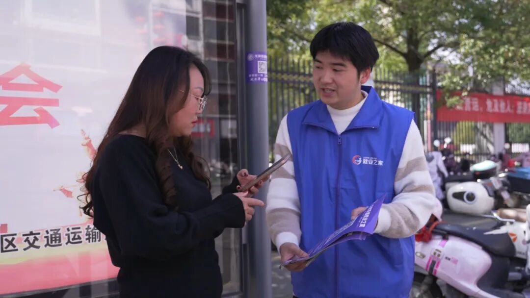 “回家正想找工作呢,正好碰到工作人员上门送岗位,很贴心。”回乡待业青年陈女士在工作人员的指导下,现场打开手机演示,从查看岗位、筛选条件到投递简历,全程几分钟就能完成。这种不出小区、不耽误家务的求职方式对上班族、宝妈、大龄求职者来说,省心又省力。 网格员变身:家门口的“就业服务员” 二维码贴得到位,服务更要跟上。余江的社区网格员们,纷纷化身专属就业服务员。