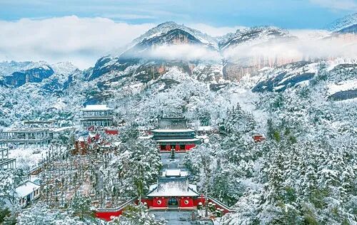 瑞雪覆丹霞,龙虎山正一观冬日仙境