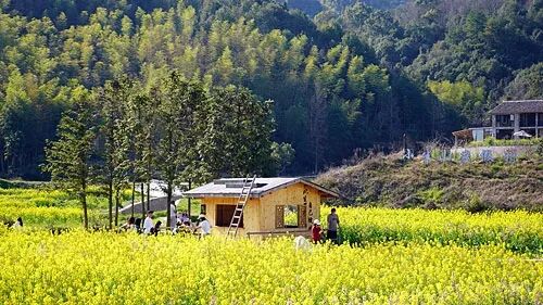 上清镇九井口森林咖啡馆在春日油菜花海与水杉林间迎来大批游客