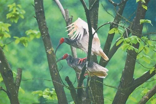 枝头绿意掩映下,龙虎山的朱鹮灵动栖息 肖天祥 摄