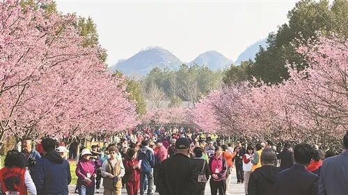 龙虎山花语世界樱花盛放,游人络绎不绝,共赴春日花海之约