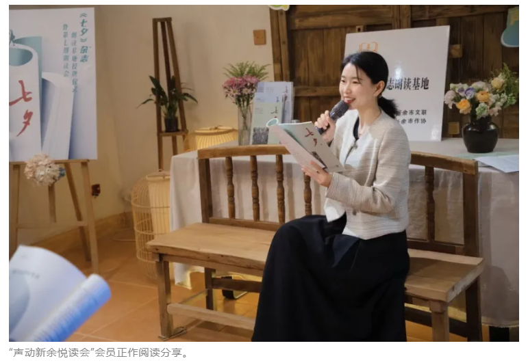“阅读应该是快乐的事” 如果说“有书可读”是基础,那么“爱上阅读”便是更高的追求。在新余,阅读的方式正在被不断刷新。 “声动新余悦读会”别出心裁,让会员为赣西抗战博物馆的文物配音,做有声解说。馆长宋子枫感叹,当这些抗战文物,配上有声解说,历史仿佛瞬间“活”了过来。游客只要扫描文物旁的二维码,文物的故事便娓娓道来,在时空交融间,阅读变成一场沉浸式的文化体验。 他们还定期开展朗诵会,把本地《七夕》杂志进行有声化。会员们或慷慨激昂,或低回婉转,将文字里的情感用声音传递出来。会员陈华说:“阅读是一种很解压的方式,它就是我们生活中的‘诗和远方’。” 会长子旭把“阅读会”改成了“悦读会”,一字之改,意味深长。“阅读应该是快乐的事,”子旭说,“当读书不再是任务,而是一种享受,人们才会真正爱上它。”